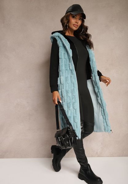 Jasnoniebieska Długa Kamizelka z Futerka Zapinana na Suwak z Kapturem Vioresa