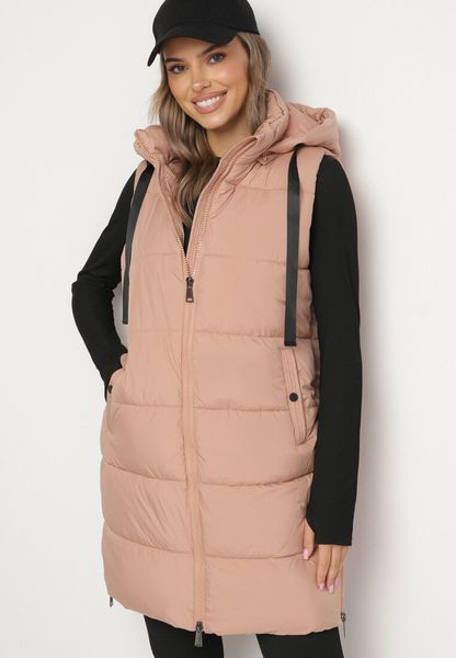 Różowa Długa Kamizelka Pikowana z Odpinanym Kapturem i Sznurkami do Regulacji Nerienna