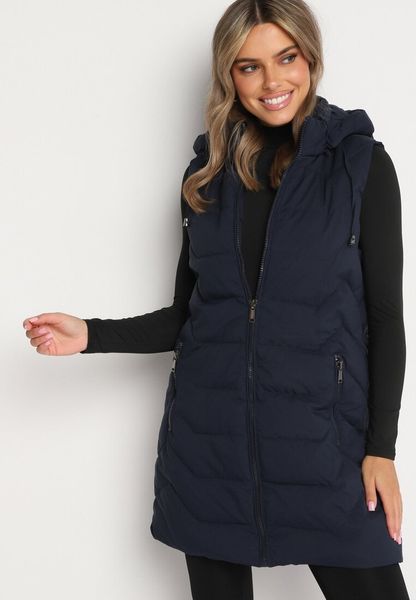 Granatowa Pikowana Kamizelka z Odpinanym Kapturem i Kieszeniami na Suwak Anoria