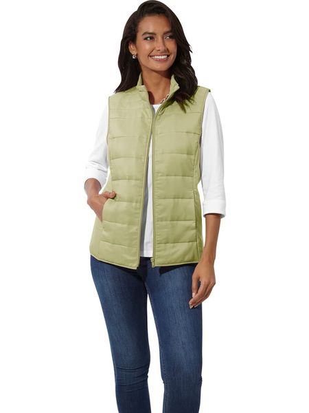 Jasnozielona Taliowana Kamizelka Przejściowa z Pikowanymi Przeszyciami i Kapturem Tintella