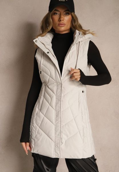 Jasnoszara Taliowana Kamizelka z Pikowanymi Przeszyciami i Kapturem Tuloria
