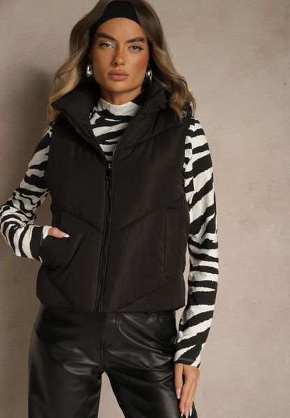 Czarna Pikowana Kamizelka Casual z Kapturem Olanissa
