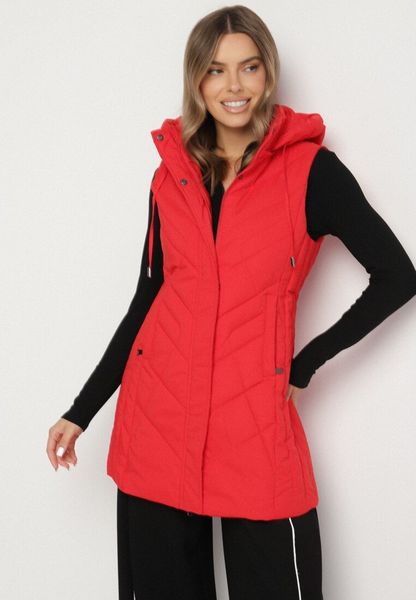 Czerwona Taliowana Kamizelka z Pikowanymi Przeszyciami i Kapturem Tuloria