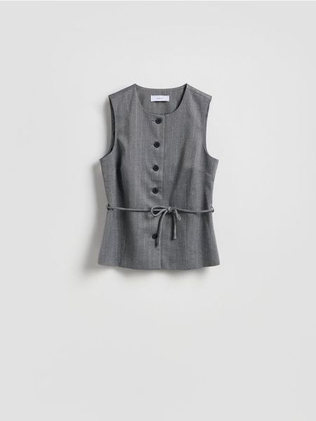 Kamizelka o dopasowanym kroju, wykonana z tkaniny z wiskozą.