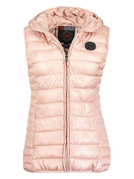 Jasnoróżowa Kamizelka z Kapturem Ozdobiona Wstawką z Ekoskóry i Pikowaniem Terithasa