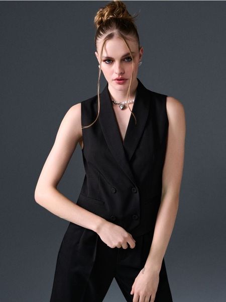 Sinsay – Kamizelka garniturowa dwurzędowa – czarny –