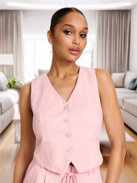 Elegancka kamizelka wykonana z delikatenej da skóry wiskozy, lnu oraz bawełny.
