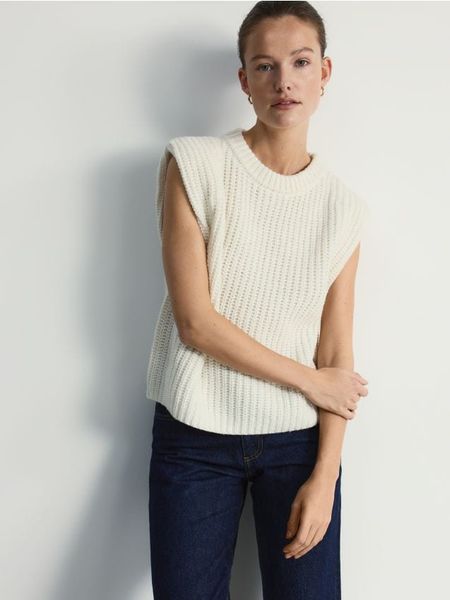 Dzianinowa kamizelka z wełną – kremowy