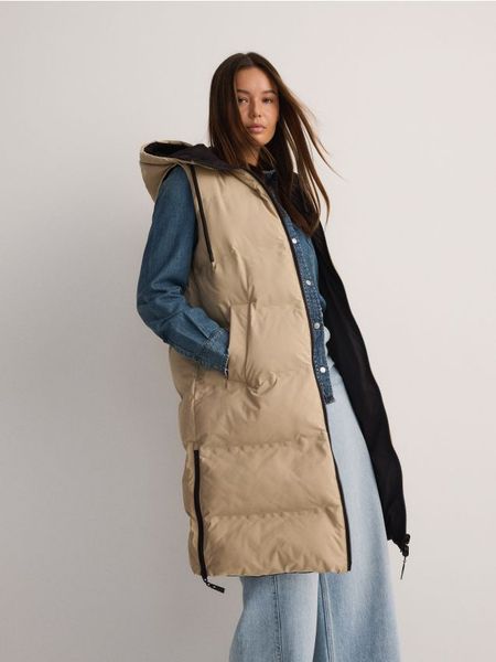 Długa dwustronna kamizelka z kapturem – beżowy