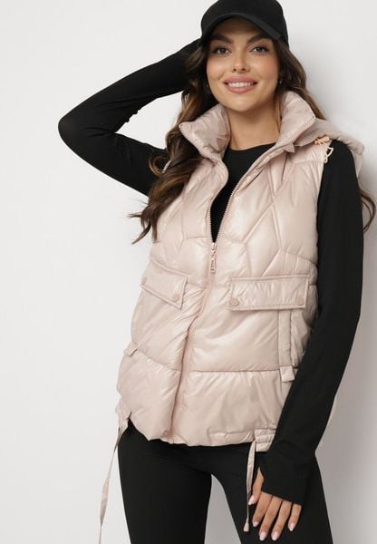 Jasnobeżowa Kamizelka Pikowana z Odpinanym Kapturem i Kieszeniami Eravindia