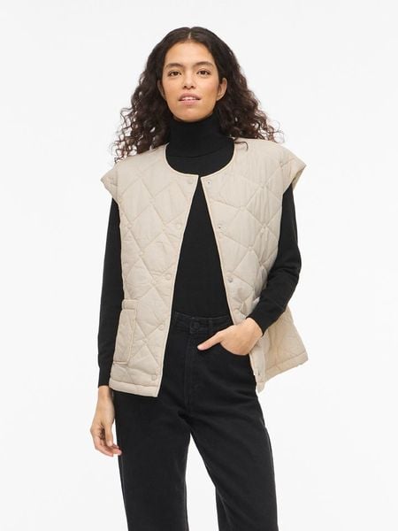 Beżowa Pikowana Kamizelka Bezrękawnik z Pikowanej i Dwustronnej Tkaniny Erinea