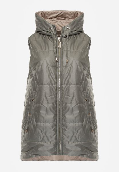 Ciemnozielona Kamizelka o Długim Kroju Pikowana z Nieodpinanym Kapturem Celinesta