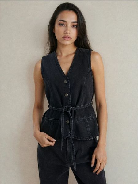 Sinsay – Jeansowa kamizelka z paskiem – czarny –