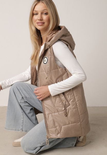 Jasnobrązowa Kamizelka z Nieodpinanym Kapturem i Geometrycznym Pikowaniem Kalousa