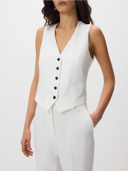 Kamizelka o dopasowanym kroju, wykonana z tkaniny z wiskozą.
