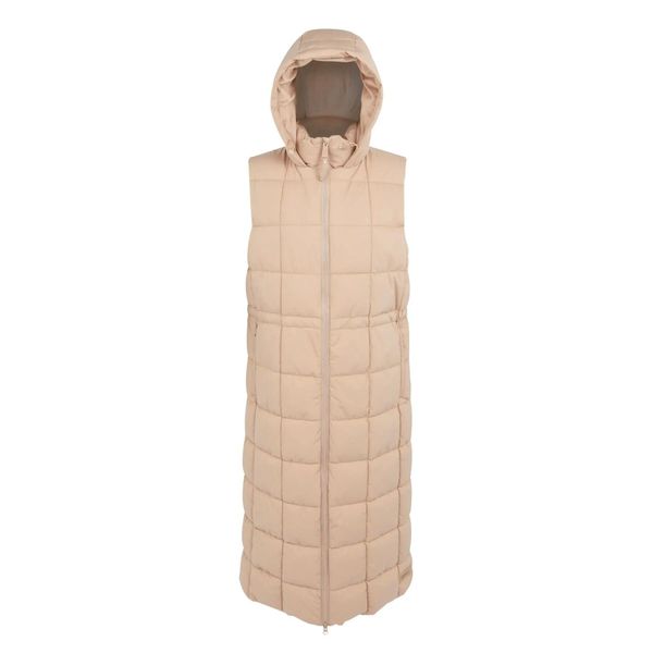 Ciemnobeżowa Długa Kamizelka z Kapturem Ozdobiona Imitacją Kieszeni Mavaria