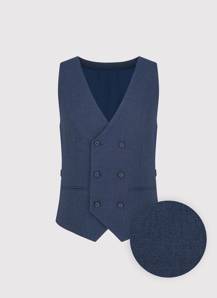 Granatowa kamizelka męska – Pako Lorente. Melanżowa, dwurzędowa kamizelka męska. Skład: 69% poliester, 29% wiskoza, 2% elastan. Podszewka: 100% poliester. Fason: Slim.