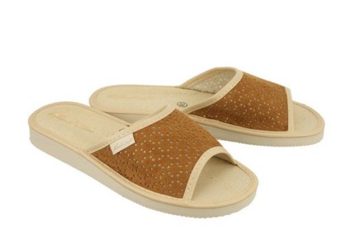 Kapcie damskie. Kolekcja Natural Style firmy Meteor. Wkładka z naturalnej skóry. Elastyczne, nie zostawiające śladów podeszwy.