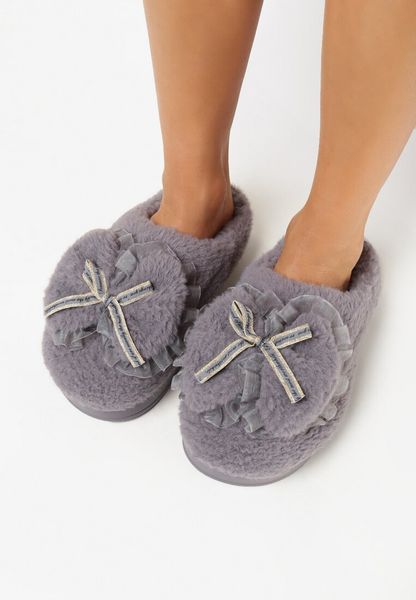 Szare Kapcie Pluszowe z Kokardką Xaverna