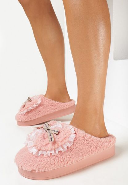 Różowe Kapcie Pluszowe z Kokardką Xaverna