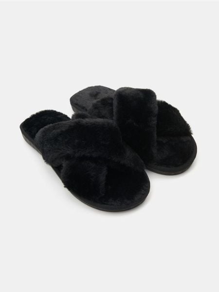 Sinsay – Kapcie ze sztucznym futrem – czarny –