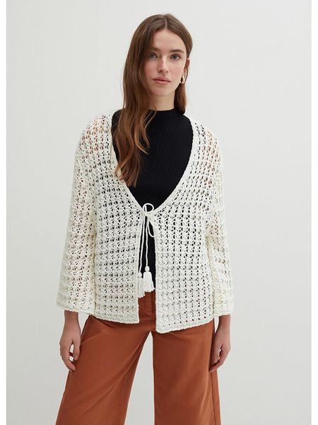 – z dodatkiem bawełny- zapięcie: sznurowanie- długość rękawa: 7/8- detale: szydełkowana koronka- krój: prosty- look: jednokolorowy- wykończenie: delikatnie prześwitujące