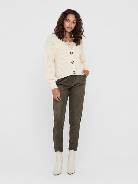 – dekolt: V- zapięcie: listwa guzikowa- ściągacz: zakończenia rękawów, dolny brzeg- krój: prosty- look: jednokolorowy- wzór splotu: luźny