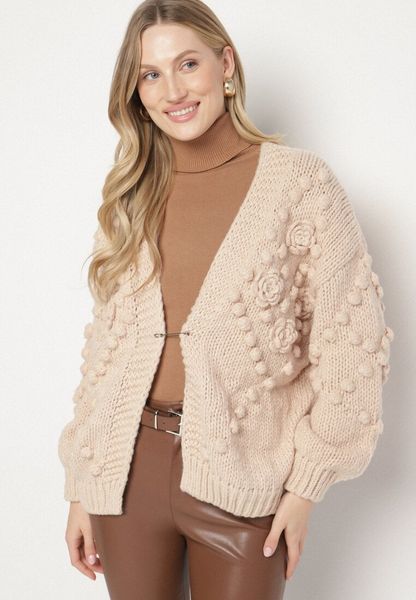 Brązowy Kardigan Ozdobiony Pomponami Besida