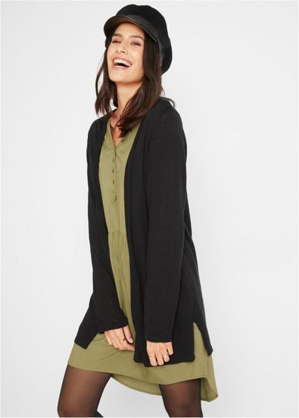 Luźniejszy kardigan z rozcięciami. Dł. od ok. 76 cm w rozm. 36/38 do ok. 82 cm w rozm. 56/58. Można prać w pralce.