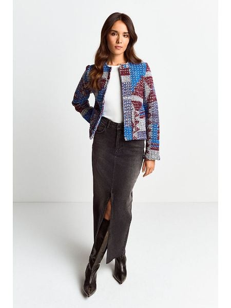 – z dodatkiem wełny- dekolt: okrągły- zapięcie: bez- kieszenie: naszyte- krój: prosty- wzór: na całości