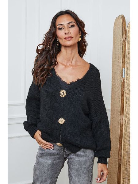 – z dodatkiem kaszmiru- dekolt: V- zapięcie: listwa guzikowa- ściągacz: zakończenia rękawów, dolny brzeg- krój: luźny- look: jednokolorowy- wzór splotu: luźny