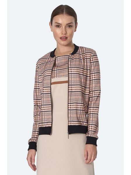– dekolt: okrągły- zapięcie: suwak- ściągacz: dekolt, zakończenia rękawów, dolny brzeg- krój: prosty- wzór: kratka