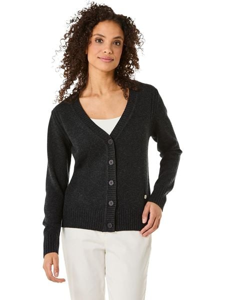– z dodatkiem żywej wełny- z dodatkiem kaszmiru- dekolt: V- ściągacz: dekolt, zakończenia rękawów, dolny brzeg- zapięcie: listwa guzikowa- krój: prosty- look: jednokolorowy