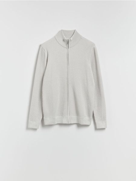 Rozpinany sweter ze stójką – jasnoszary