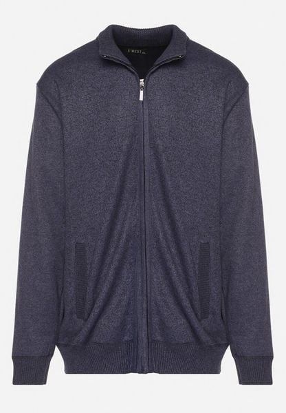 Ciemnoniebieski Ocieplany Kardigan z Wełną Zapinany na Suwak Acendrie