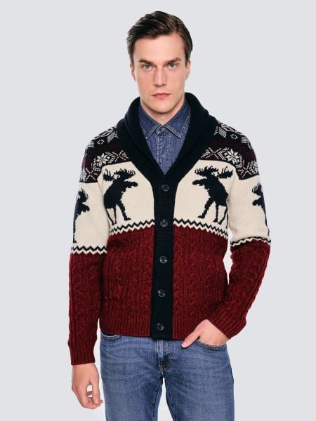 Kardigan męski ze wzorem skandynawskim bordowo-granatowy Lorenzo 000