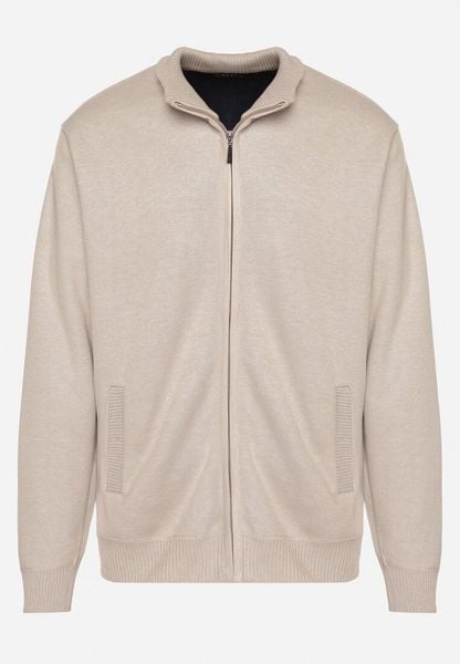 Beżowy Ocieplany Kardigan z Wełną Zapinany na Suwak Acendrie