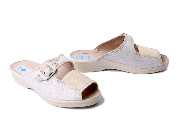 Klapki damskie. Obuwie należy do linii BIO Nature. Atrakcyjny wygląd. Zapięcie na klamerkę. Lekka podeszwa PU.