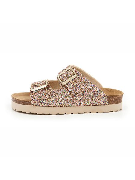 – zapięcie: sprzączka- noski: otwarte- powierzchnia: błyszcząca- wkładka: ergonomicznie formowana- podeszwa: antypoślizgowa