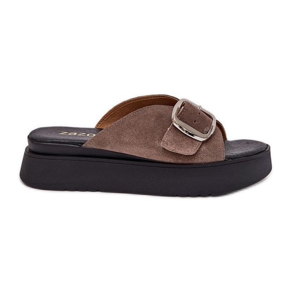 Zamszowe Klapki Damskie Z Klamrą Na Platformie Zazoo 3019 Brązowe