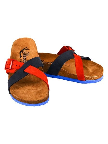 Moosefield Skórzane klapki w kolorze granatowo-czerwonym rozmiar: 39