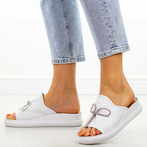 Białe skórzane klapki damskie na platformie T.Sokolski 154