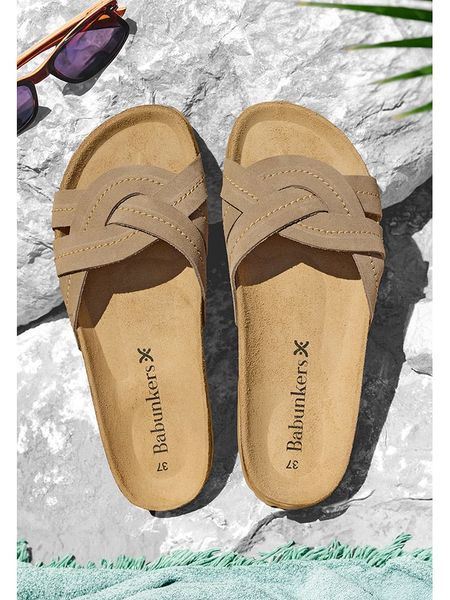 BABUNKERS Family Skórzane klapki w kolorze jasnobrązowym rozmiar: 40