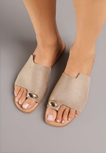 Ciemnobeżowe Klapki Vices w Stylu Japonek Ozdobione Metaliczną Aplikacją Ardellia