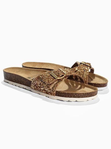 Damskie Skórzane Gładkie Klapki Złote złoty