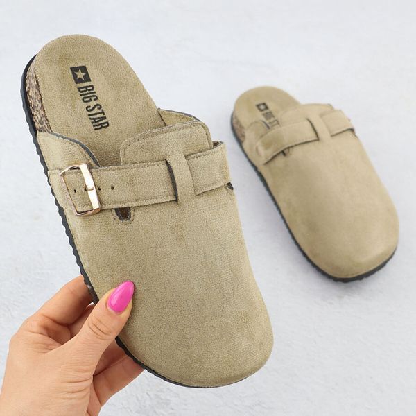Klapki damskie zabudowane zamszowe beżowe Big Star SS274738