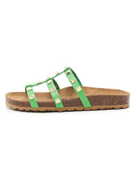 – zapięcie: bez- noski: otwarte- detale: ozdobne nity- skórzana wkładka: ergonomicznie formowana- podeszwa: antypoślizgowa