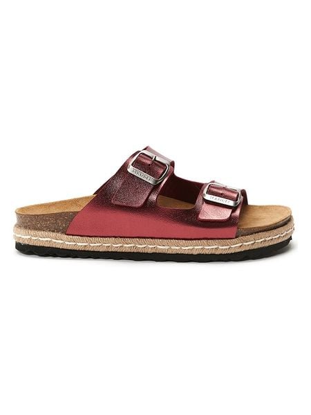 – materiał wierzchni ze skóry syntetycznej- powierzchnia: z metalicznym połyskiem- zapięcie: sprzączka- noski: otwarte- wyściółka wykonana z filcu- skórzana wkładka: tak- podeszwa: antypoślizgowa