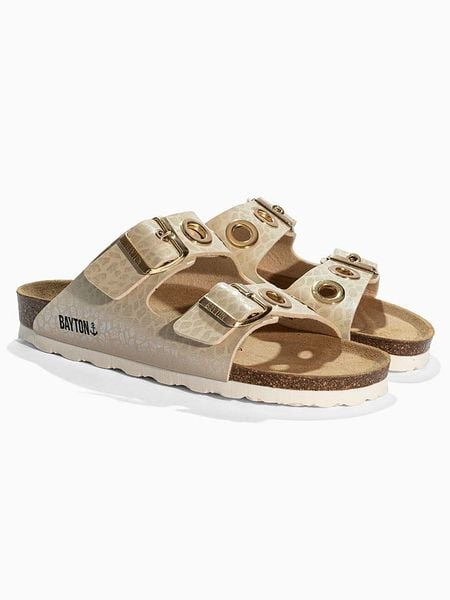 BAYTON Skórzane klapki „Janny” w kolorze beżowym rozmiar: 39
