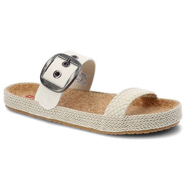 Klapki damskie Big Star, materiał syntetyczny z regulowanym paskiem zapinanym na klamrę profilowaną wkładką, białe, JJ274729